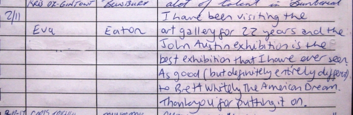 The Bunbury Regional Art Gallery show is now over, and this comment comes to the surface, Thank you Eva