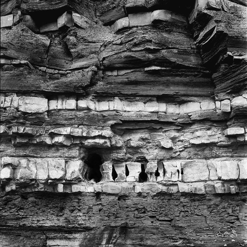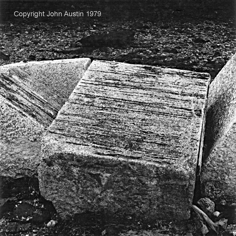 For simplicity the whole portfolio was photographed with a Rolleiflex 2.8F twin lens reflex camera. Some early work was with a wooden Gandolfi camera, but wind vibration at Severn Beach caused too many lost negatives, so the Rollei' won. This change to a small camera made long walks easy and forced the square format of these images. I never crop an image, never, never ever.